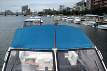 レジャーボート等の日除け、青色のシートで原着糸を使用したファブリック調の生地が使用される場合が多い。