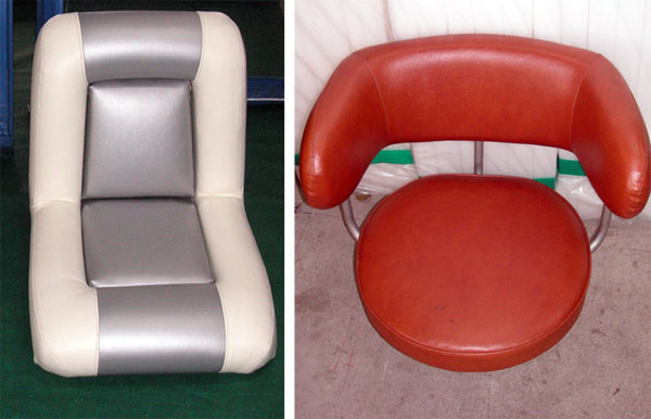 椅子の座面や背もたれのクッションを覆う革、合成革、シート等をさす車や屋内のクッションのあるベンチ等にも使われる。