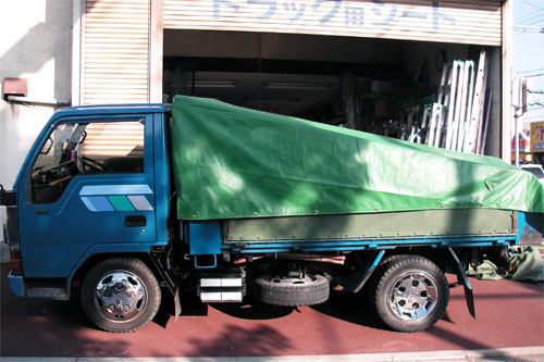 フッ素コーティングまたはターポセットの表面にアクリル樹脂コーティングした帆布でトラック幌に使用される。