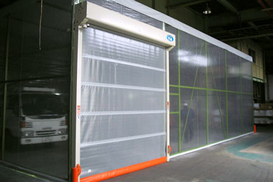 しなやかで強靱な専用シートを使うことで、高速な開閉を実現し、さらにセンサーを使った自動制御によって、物の流れや作業効率を妨げることなく間口の解放時間を短縮。工場や室内の空調効果を高めるとともに、防虫・防塵にも効果を発揮します。さらに性能・信頼性ともに熟成した生産性の向上はもとより安心して働ける職場づくりをご提案いたします。