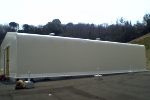 テント倉庫、電動ジャバラ、開閉式テント・間仕切り・各種テント・オーニング等の設計、構造設計、加工、施工、各種トラックシート・コンテナバックカバー等の物流資材の製造